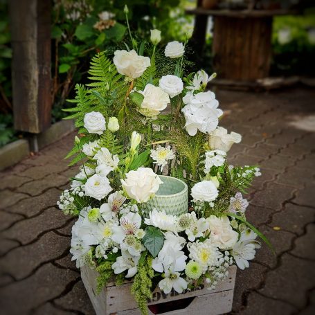 Bei der Auswahl eines individuellen Blumenschmuckes stehen wir Ihnen einfühlsam zur Seite.