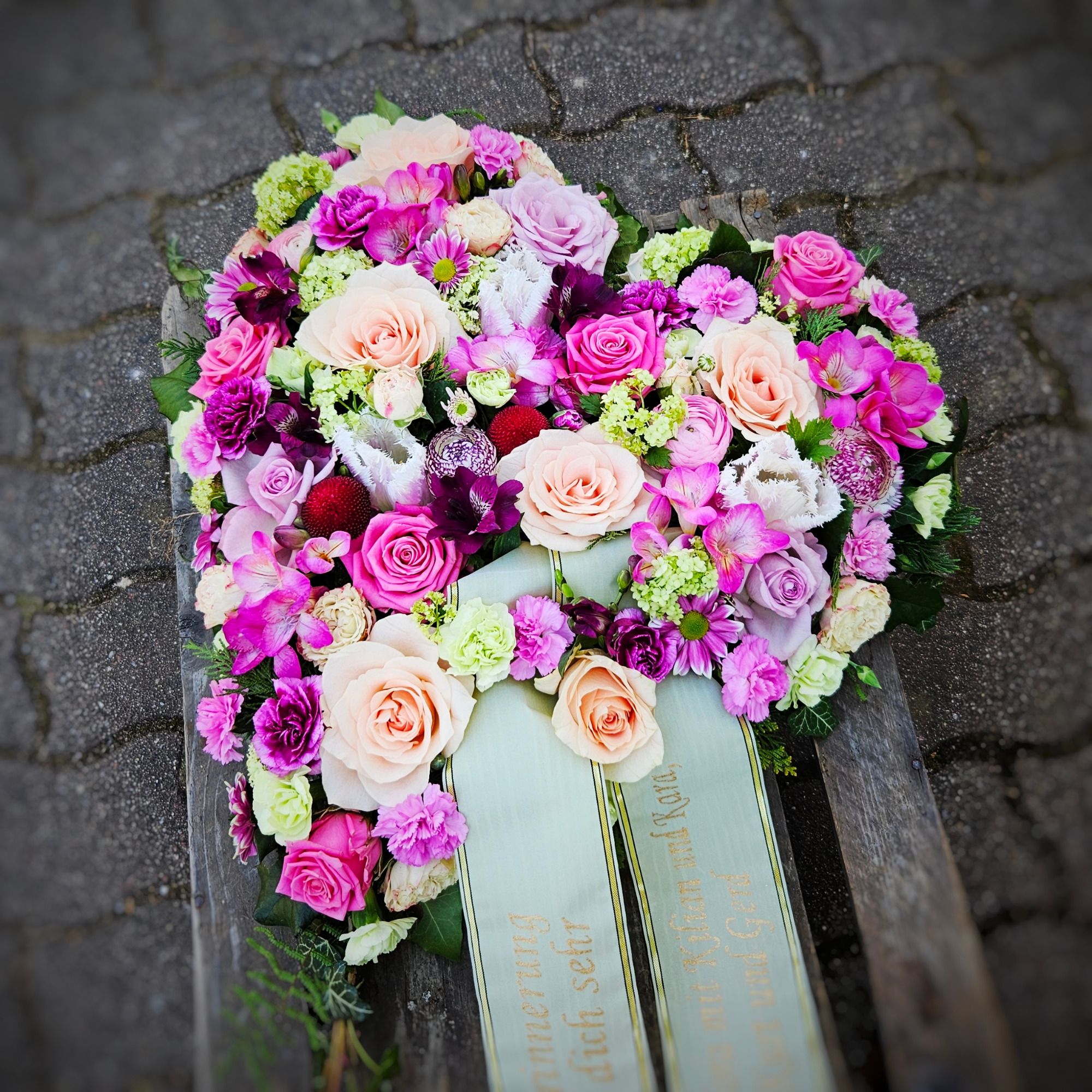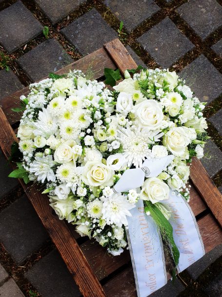 Vielen fällt es schwer, den Angehörigen zu kondolieren und ihr Mitgefühl in Worte zu fassen. Würdevoll gestaltete Trauerfloristik zur Ehrung des Verstorbenen hilft dabei, sie spendet Trost und unterstreicht stilvoll Ihre Beileidsbekundung zum Abschied eines lieben Menschen.